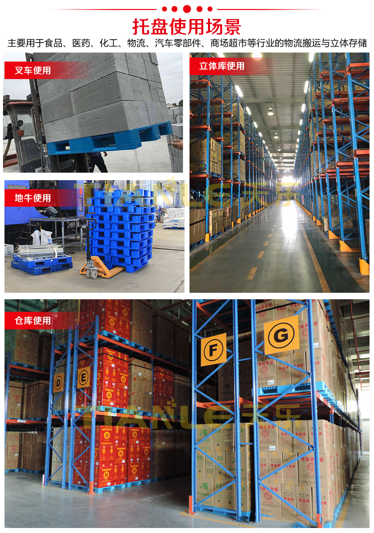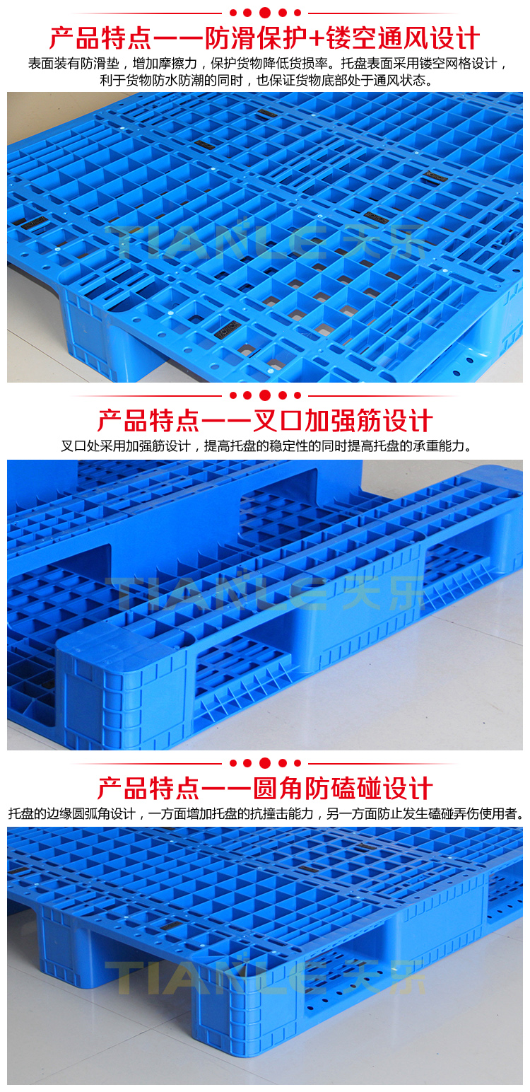 山東天樂塑料科技有限公司,主要生產(chǎn)塑料托盤,塑料周轉筐,塑料垃圾桶,銷售木包裝箱木托盤,膠合板托盤,產(chǎn)品使用于汽車、食品、醫(yī)藥、造紙、印刷、電子、電器、化工、紡織、服裝、倉儲物流、環(huán)衛(wèi)等行業(yè)。產(chǎn)品多規(guī)格全價格實惠,大廠家售后保障體系完善。產(chǎn)品品種,以載重量分類,包括:一次 使用的特輕型、輕型、標準型、貨架加重型等適用范圍:食品醫(yī)藥化工紡織汽配廠等行業(yè)倉儲物流運輸用